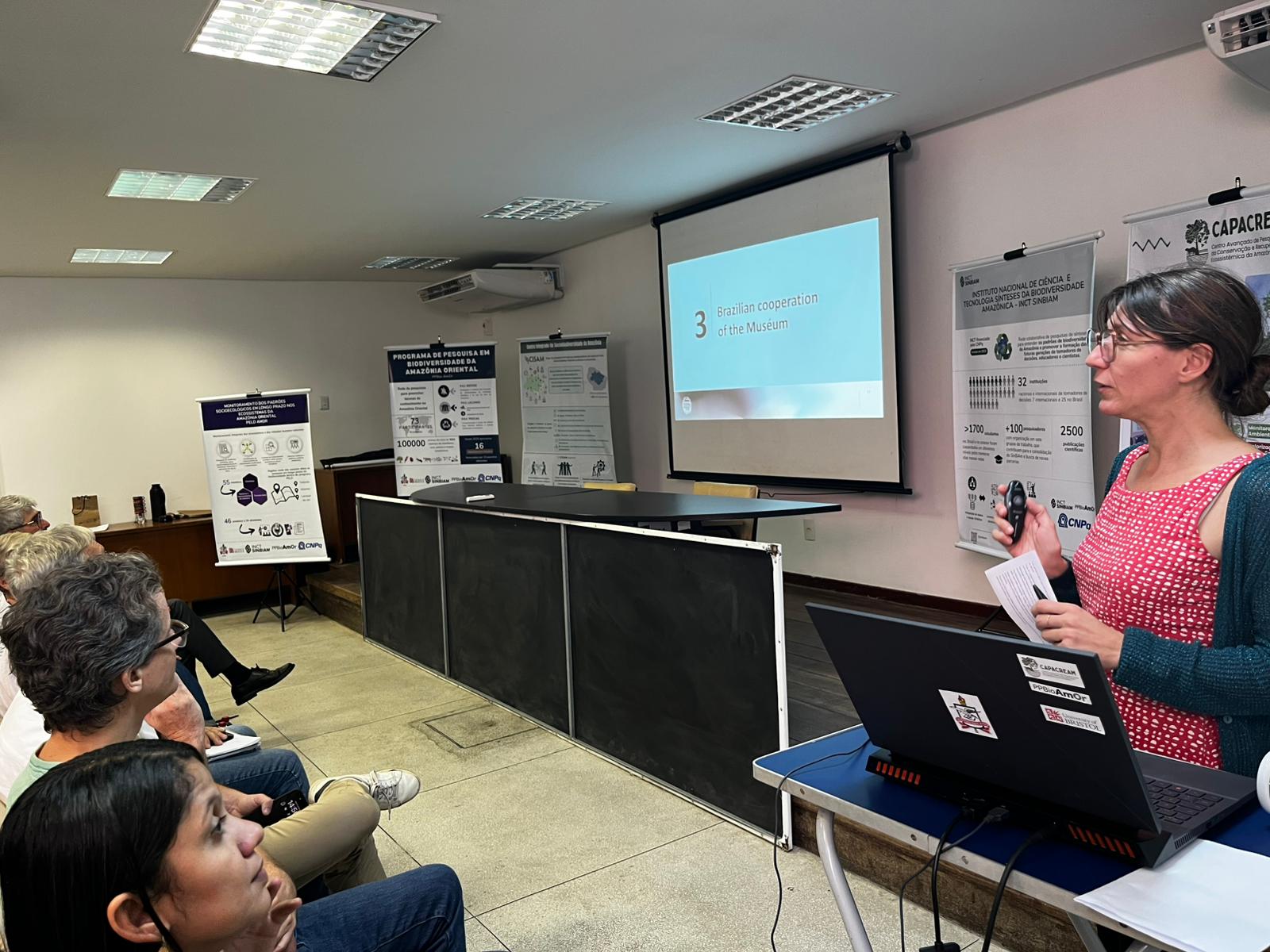 Frentes de Pesquisa – Ainda durante o encontro, na UFPA, foram apresentadas as frentes de pesquisa que poderão se beneficiar diretamente da parceria. Foram mencionadas as redes PPBio/PELD-AmOr, CISAM, INCT-SinBiAm e CAPACREAM, pelo professor Filipe França, do Programa de Pós-Graduação em Ecologia (PPGECO/UFPA) e professor da Universidade de Bristol (Reino Unido). “Ainda enfrentamos enormes desigualdades de investimento em ciência na Amazônia, mas nossas redes estão consolidando colaborações em múltiplas escalas. Produzimos dados de longo prazo, trabalhamos com comunidades locais e formamos pesquisadores amazônicos. Essa parceria com o MNHN amplia nossa capacidade de síntese científica, de internacionalização e de informar políticas públicas que dialoguem com a realidade regional”, enfatizou. A professora Grazielle Teodoro, do Laboratório de Ecologia de Produtores Primários (ECOPRO/UFPA), trouxe exemplos ligados à vegetação. “Nossos estudos analisam as estratégias ecológicas de plantas aquáticas e terrestres em diversos ecossistemas amazônicos. Avaliamos a resposta da vegetação às mudanças climáticas e alterações do uso do solo, como os impactos do manejo, como o do açaí em áreas de várzea. Projetos conjuntos podem avançar o entendimento de como os ecossistemas respondem às mudanças climáticas e orientar estratégias de restauração”.