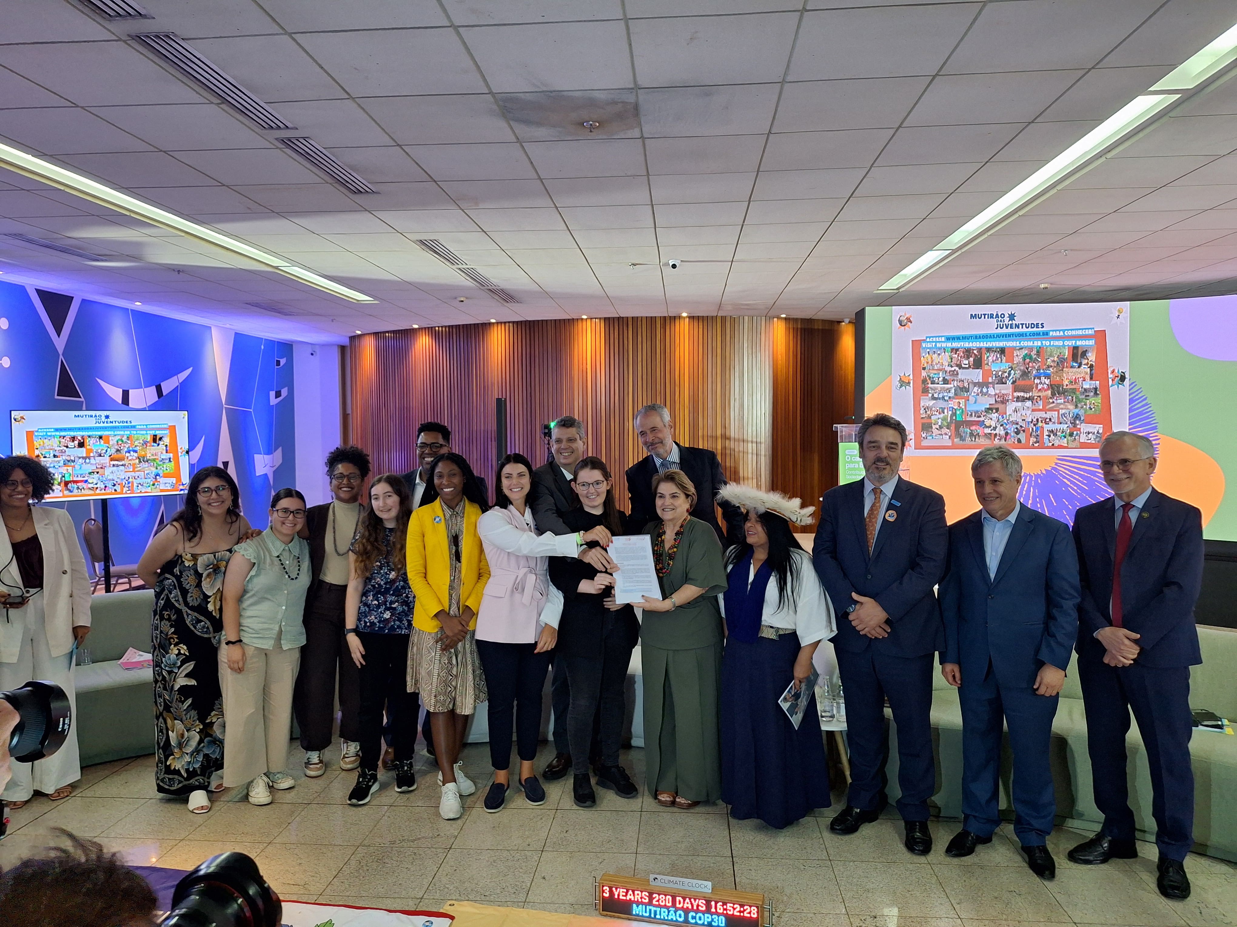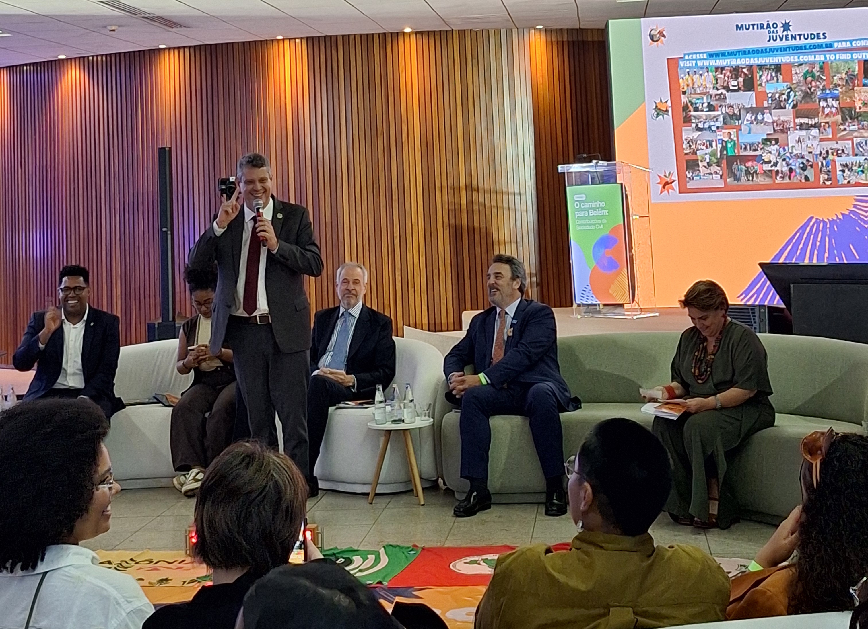 Em sua participação com os jovens, o presidente da COP 30, André Corrêa do Lago, enfatizou que “essa COP é sobre o futuro”. Segundo ele, há pouco tempo para reverter a crise do clima. “A ciência afirma que temos seis ou sete anos para realmente conseguir impedir que o clima ultrapasse um grau e meio e, se isso acontecer, não dá nem para imaginar os horrores. Para vocês terem ideia, tem cenários analisados pelo governo americano e que não podem ser publicados, de tão assustadores que são, então nós temos que atuar e vocês têm que cobrar da gente”, frisou.