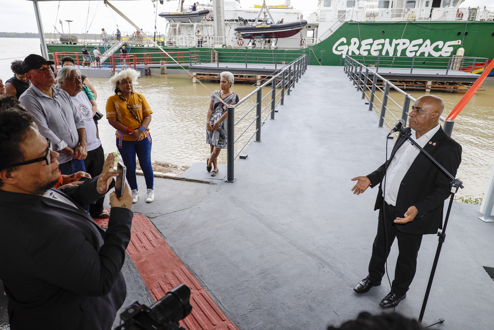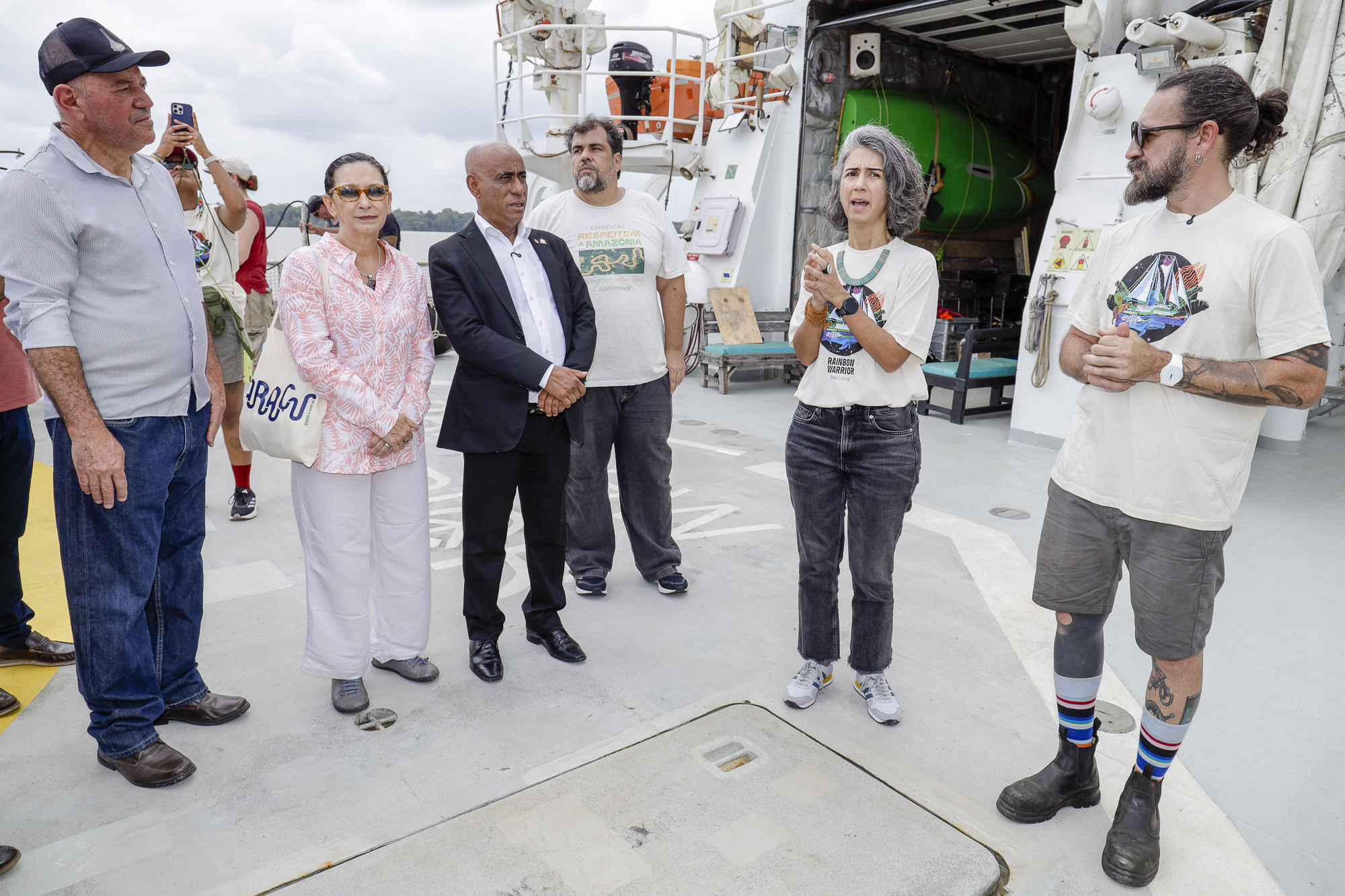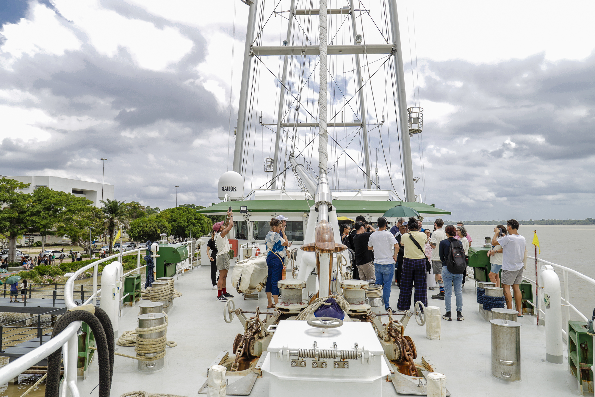 A vinda da embarcação integra a programação do Movimento Ciência e Vozes da Amazônia na COP 30, lançado pela universidade em fevereiro deste ano. O reitor da UFPA, Gilmar Pereira da Silva, deu as boas-vindas aos tripulantes, e destacou que a instituição tem buscado ampliar sua presença e diálogo com diferentes comunidades amazônicas. “Nós temos dialogado sobre a universidade para além dos muros. E hoje a gente está também colocando a universidade para as águas, para o rio”, afirmou, durante a inauguração do novo píer da instituição, que agora é capaz de receber embarcações de grande porte, como o navio do Greenpeace.