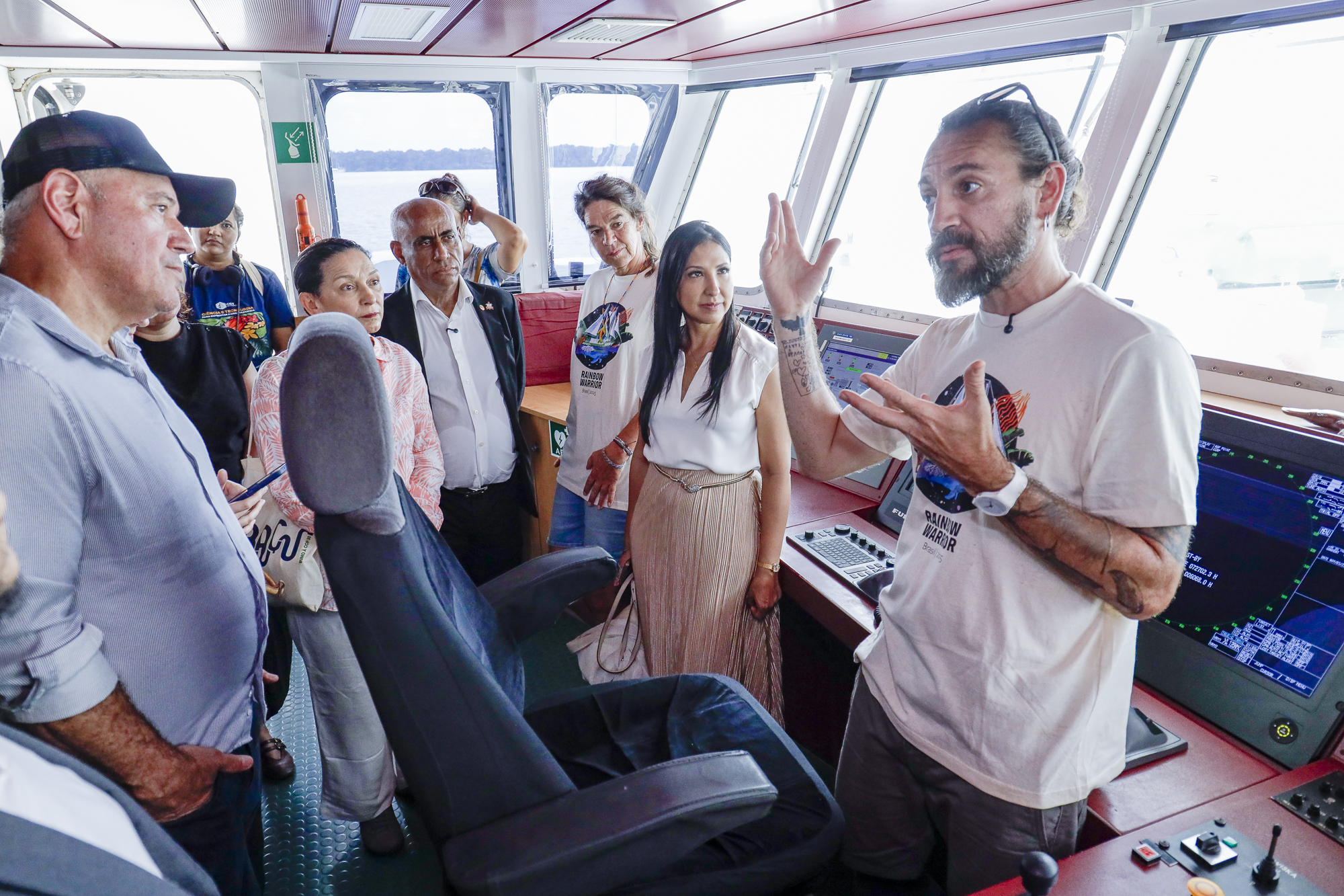 “Acho que é uma chegada muito simbólica que representa o compromisso do Greenpeace de caminhar com o movimento social e com os povos indígenas. É uma caminhada coletiva, não existe solução sem essa construção”, destacou Carolina Pasquali. Ela considera essencial a conexão estabelecida com os povos originários. “A gente sabe que muitas vezes as vozes que vêm do chão são pouco ouvidas, então quando a gente pode usar uma plataforma como este navio que percorre o mundo todo registrando os efeitos da crise climática e dando voz às comunidades impactadas pela crise climática, é primordial. O navio está vindo agora, por exemplo, do Pacífico, da Nova Zelândia, enfim, a gente faz isso com muita alegria”, acentua a diretora executiva Greenpeace Brasil.
