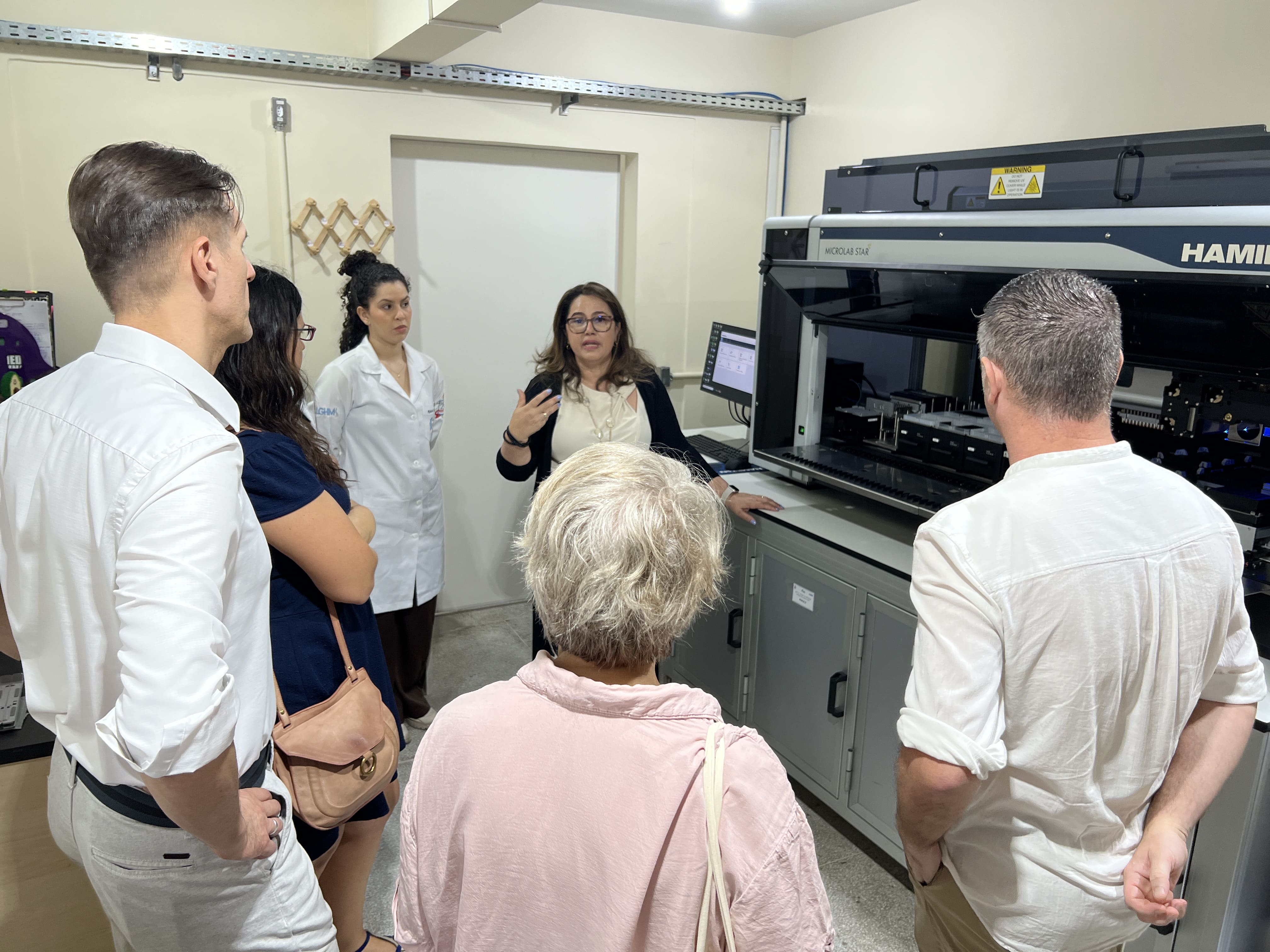 O primeiro compromisso da agenda oficial dos visitantes foi no Laboratório de Genética Humana e Médica (LGHM), coordenado pela professora Ândrea Kely Ribeiro-dos- Santos. “A visita dos pesquisadores do CNRS, especialmente com a presença do diretor Liviu Nicu, é motivo de grande satisfação para nós, pois abre a possibilidade real de colaborações internacionais com a França, permitindo a realização de projetos em conjunto, incluindo a troca de experiências entre os diferentes grupos de pesquisa, tanto brasileiros quanto franceses”, afirma a docente.