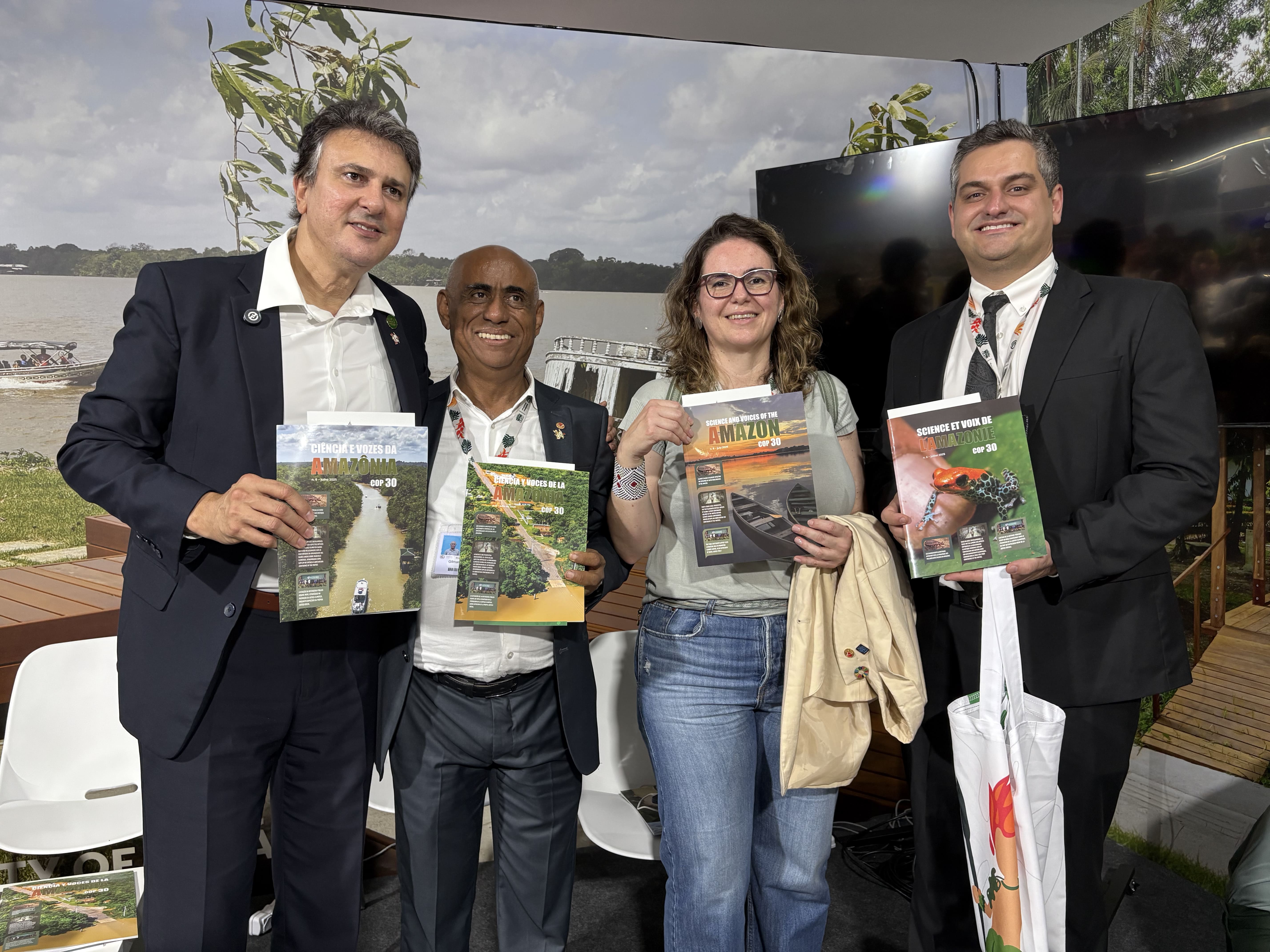 O estande da UFPA na Zona Azul abriu espaço para um momento bastante significativo nesse período de realização do movimento Ciência e Vozes da Amazônia na COP 30. Foi o lançamento da edição de número 6 da publicação de mesmo nome da iniciativa.