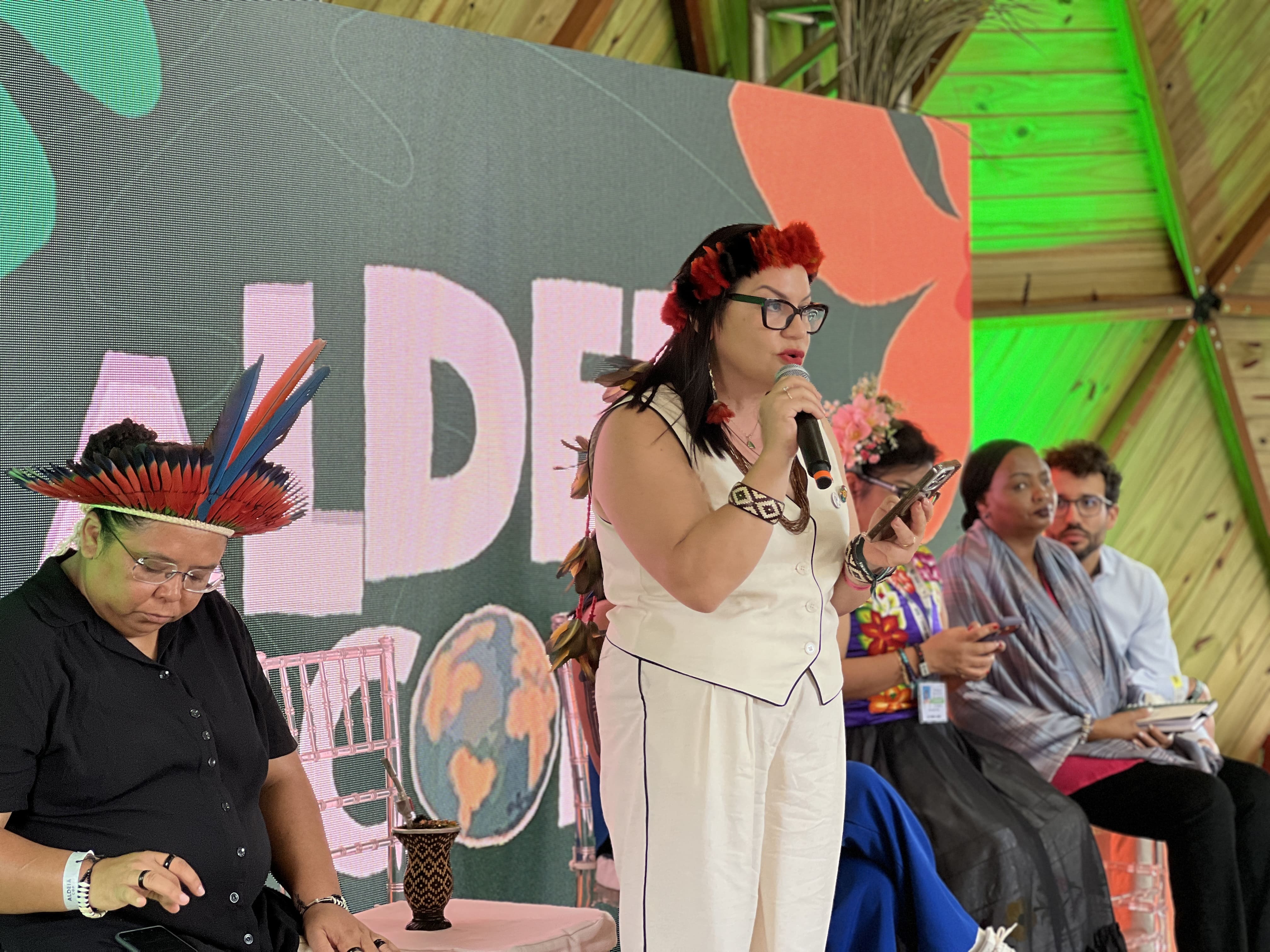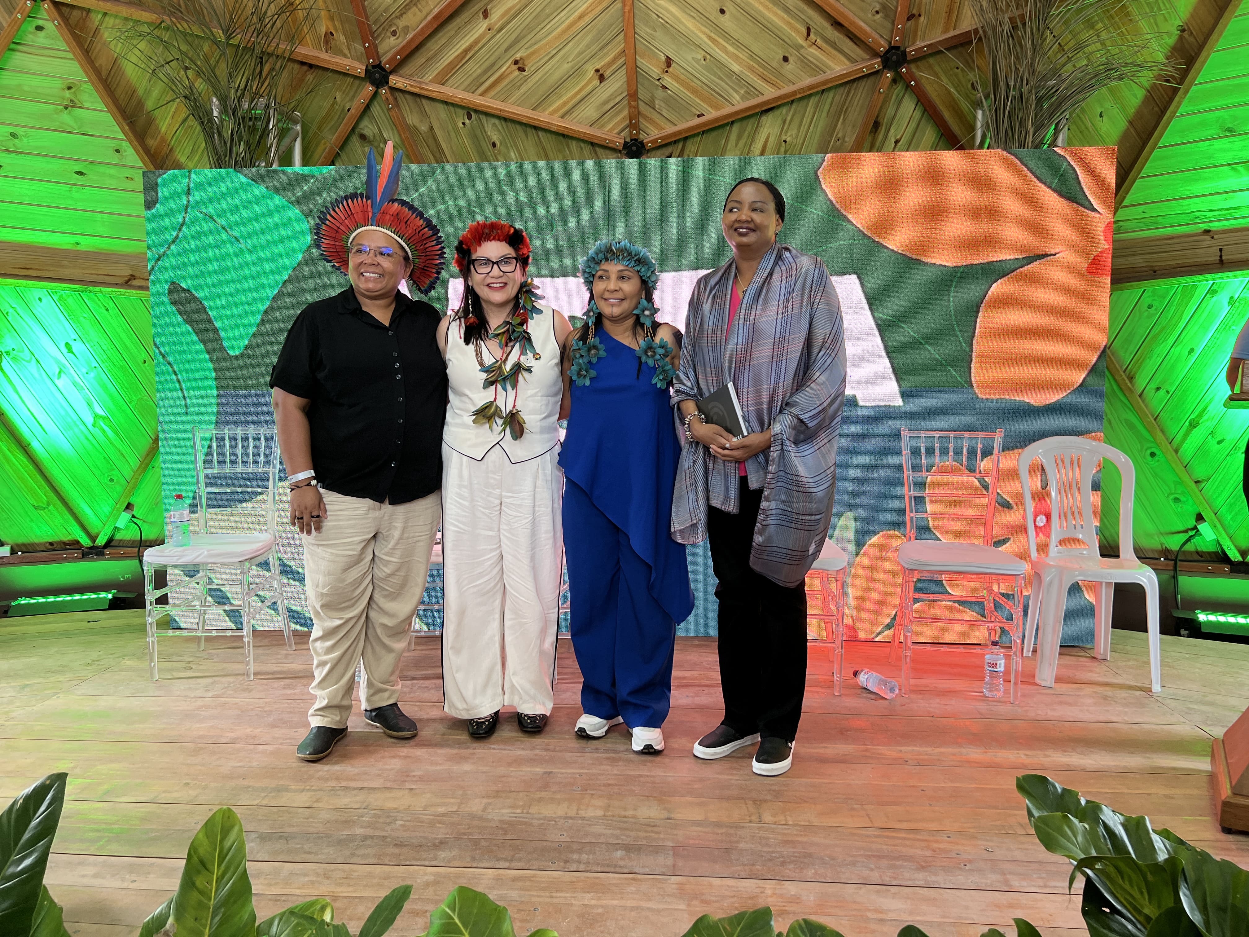Em foco, as participantes destacaram a importância da articulação internacional nos debates sobre as urgências climáticas realizados na capital paraense. Ceiça Pitaguary, secretária nacional de Gestão Ambiental e Territorial Indígena do Ministério dos Povos Indígenas (MPI), reforçou a importância da COP 30, como momento decisivo para a implementação de medidas de enfrentamento às mudanças climáticas, e para que isso ocorra efetivamente é necessário que as mulheres sejam ouvidas.