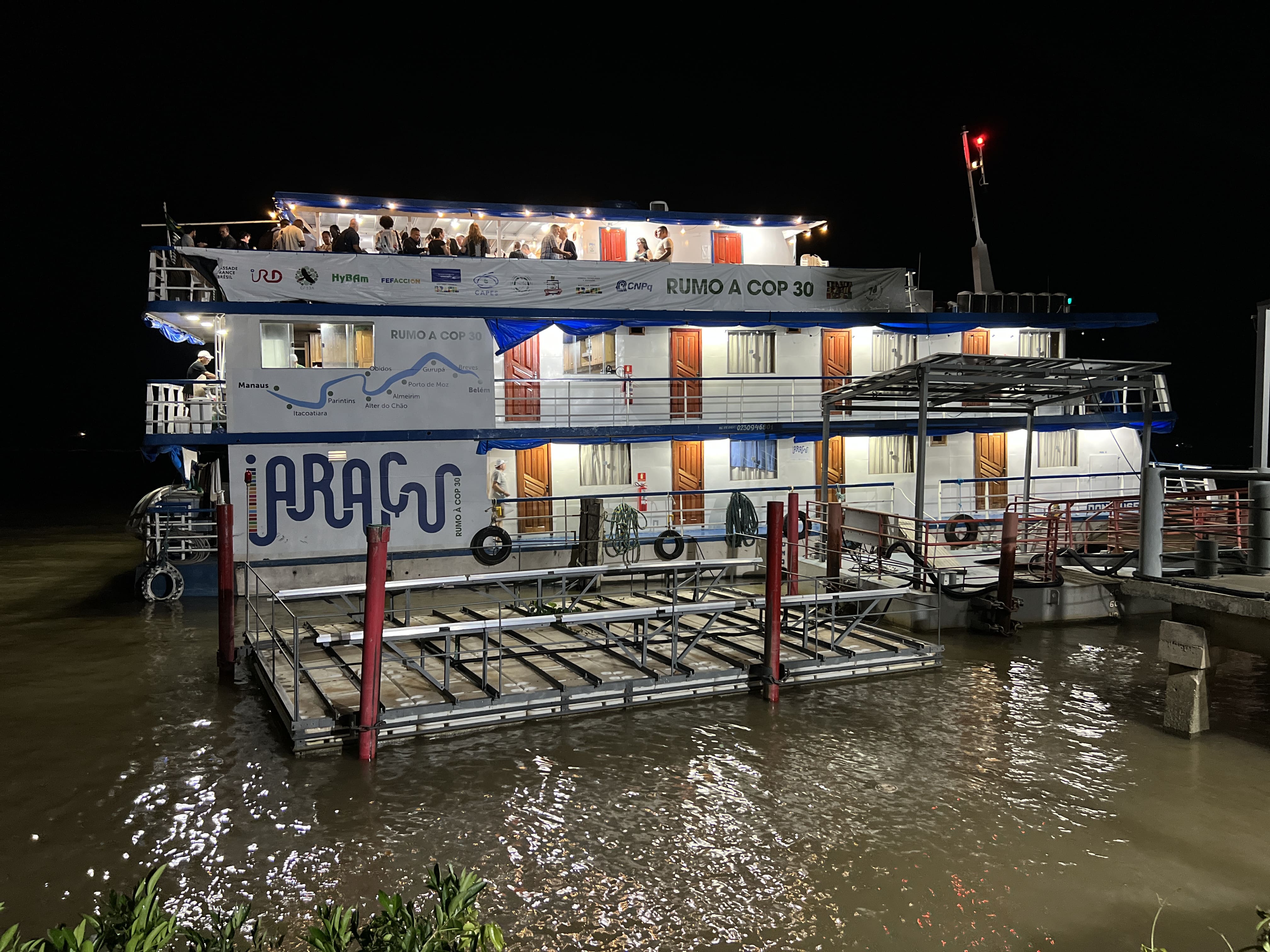 Projetos institucionais e científicos realizados em parceria entre Brasil e França estiveram em evidência no último dia 13 de novembro, na orla da Universidade Federal do Pará (UFPA). A programação intitulada “Furdunço da Cooperação Universitária e Científica Franco-brasileira” foi realizada no barco da Bienal das Amazônias sobre as Águas, marcando a abertura do diálogo entre as Bacias da Amazônia e do Congo. Sob o tema “A Amazônia no Centro do Mundo: conectando as três grandes bacias de florestas tropicais”, os participantes vivenciaram um momento ímpar na defesa da biodiversidade no planeta, mediante a realização da COP 30, em Belém.