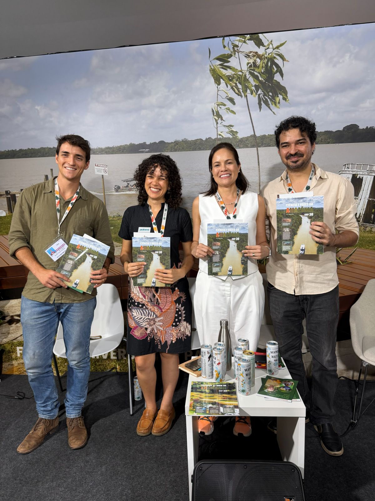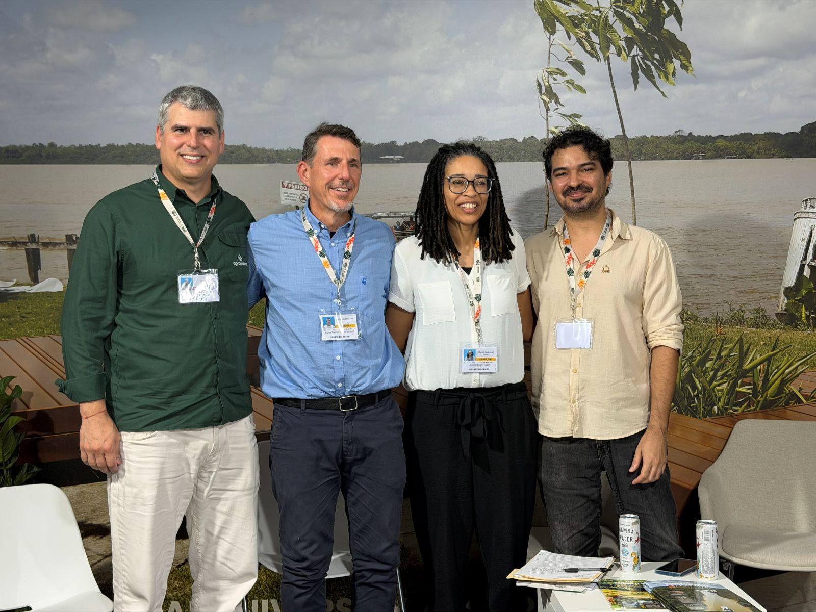 A agenda seguiu com o painel “Instrumentos financeiros para bioeconomia amazônica”, moderado por Filipe Saraiva. Participaram Túlio Dias (Sustentabilidade da Agropalma), Rodrigo Castro (Fundação Solidaridad) e Jennifer Naomi Eaglin (The Ohio State University).