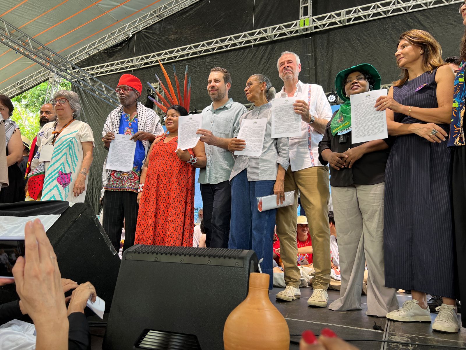 No domingo, 16, a cerimônia de encerramento foi marcada pela entrega ao presidente da COP 30, o embaixador André Corrêa do Lago, da Carta Política da Cúpula dos Povos e também a Carta das Infâncias. O embaixador recebeu os documentos acompanhado da ministra de Estado do Meio Ambiente e Justiça do Clima, Marina Silva, da ministra dos Povos Indígenas, Sônia Guajajara, e do reitor da UFPA, Gilmar Pereira da Silva, dentre outras autoridades.