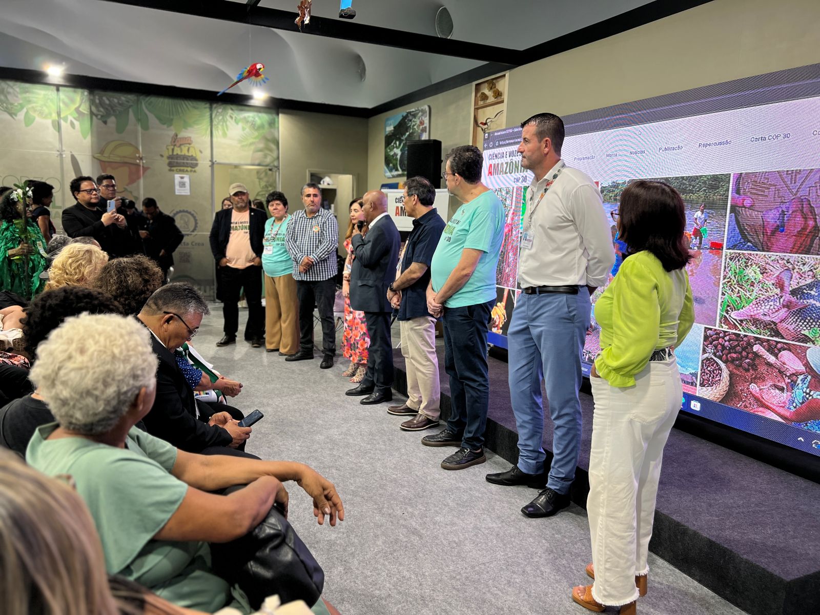 A cerimônia de encerramento das atividades da Universidade Federal do Pará (UFPA) nas Zonas Azul (Blue Zone) e Verde (Green Zone) da COP 30, na sexta-feira, 21 de novembro de 2025, foi marcada pelo lançamento de uma edição especial da série de publicações “Ciência e Vozes da Amazônia na COP30”, no Pavilhão Crea-Pará, da Zona Verde, no Parque da Cidade. O movimento editorial, iniciado em fevereiro de 2025, chegou ao seu sétimo número destacando a diversidade do pensamento amazônico.