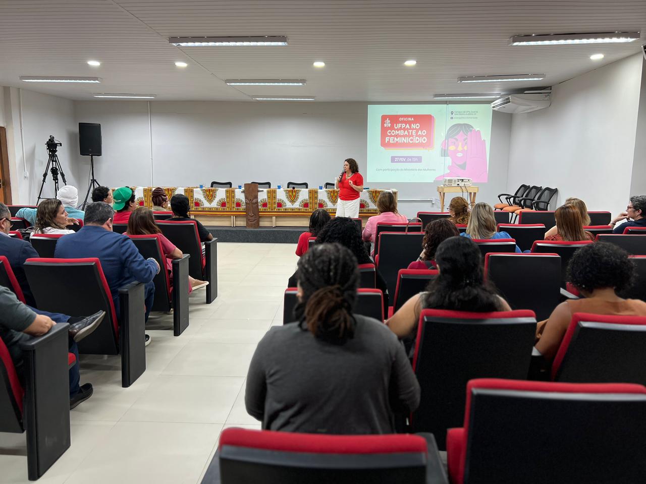 O encontro foi realizado no auditório H2, no Setor Básico, Campus I, Guamá, aberto à comunidade interna e externa e com transmissão on-line pelo canal do YouTube da UFPA. “Essa é uma atividade importante da universidade e demonstra o empenho da instituição com uma causa que é comum à toda a sociedade”, enfatizou a professora Milene Lauande (DIVERSE/UFPA). Segundo ela, a iniciativa faz parte do Pacto Nacional Brasil contra o Feminicídio, lançado em fevereiro de 2026, que se destaca como ação interinstitucional e reúne os Três Poderes (Executivo, Legislativo e Judiciário) no sentido de combater a violência de gênero.